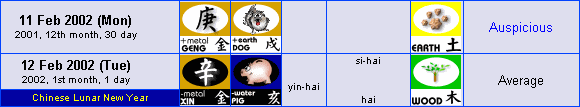 i.e. Auspicious - 10 Feb 2002 (Sun), 11 Feb 2002 (Mon)